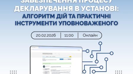 27Лют27.02.2026 Вебінар «Забезпечення процесу декларування в установі: алгоритм дій та практичні інструменти уповноваженого» ... читати далі