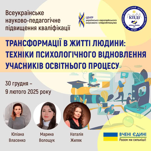 Запрошуємо до участі у ПІДВИЩЕННІ КВАЛІФІКАЦІЇ З ТРАНСФОРМАЦІЙ В ЖИТТІ ЛЮДИНИ