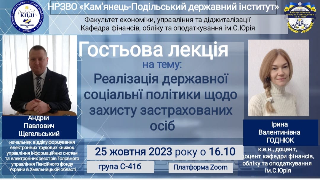 Гостьова лекція: «Реалізація державної соціальної політики щодо захисту застрахованих осіб»